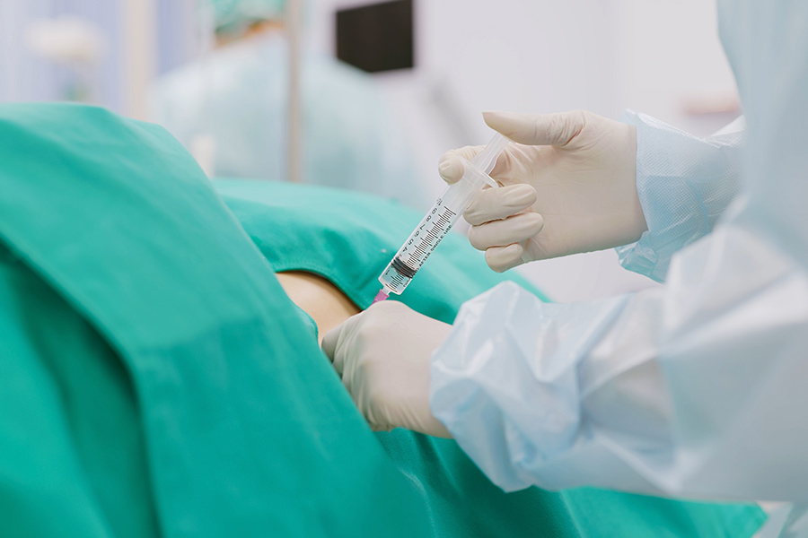 경막 바깥 공간에 마취제를 삽입하여 통증을 없애는 방법입니다.