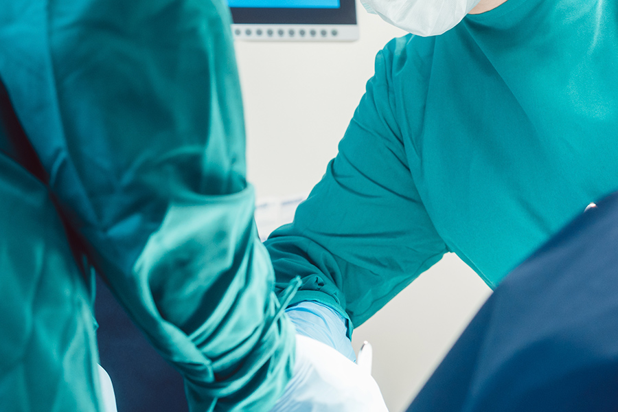 마취를 시행한 후, 수술 부위를 소독하고